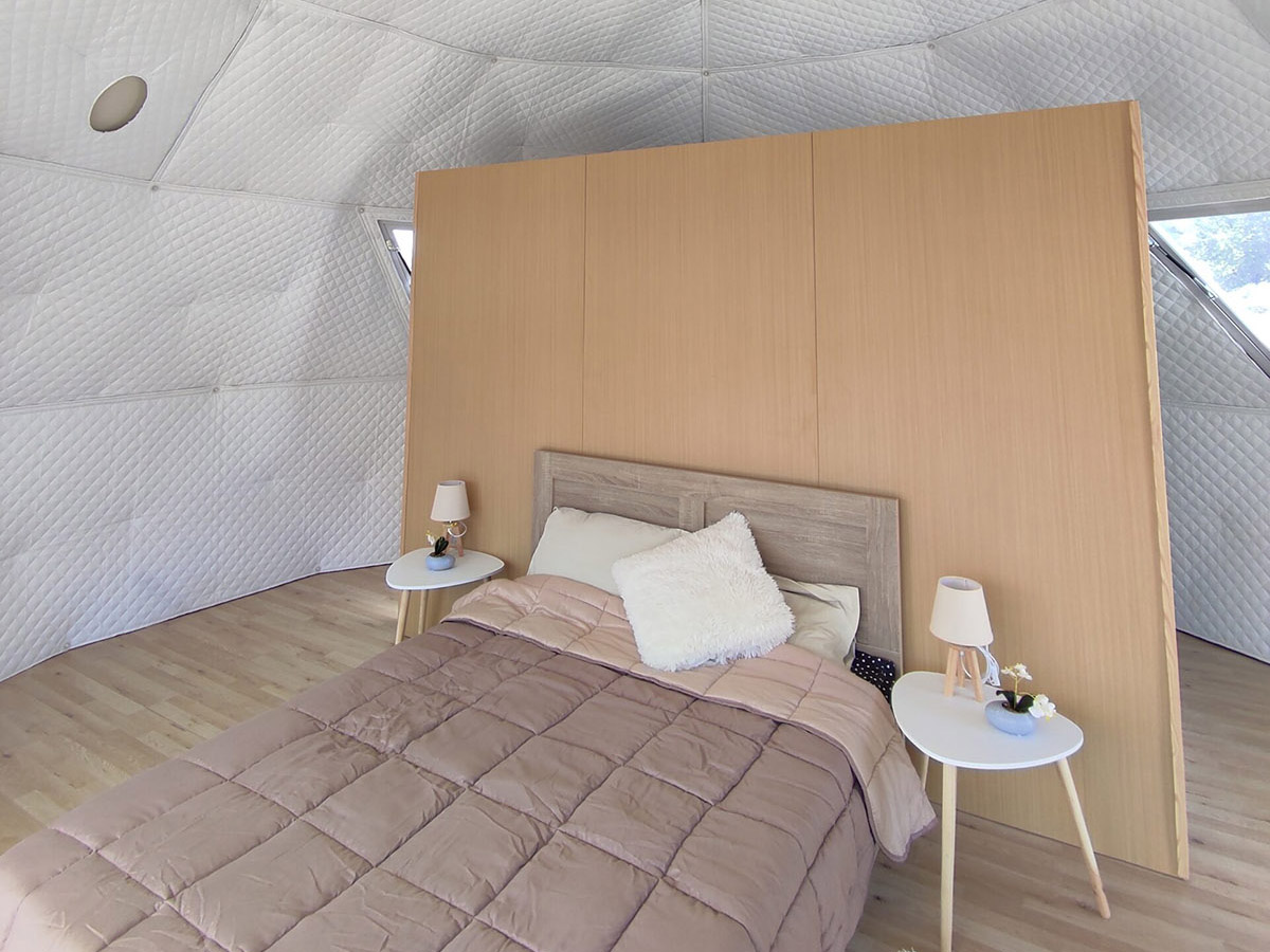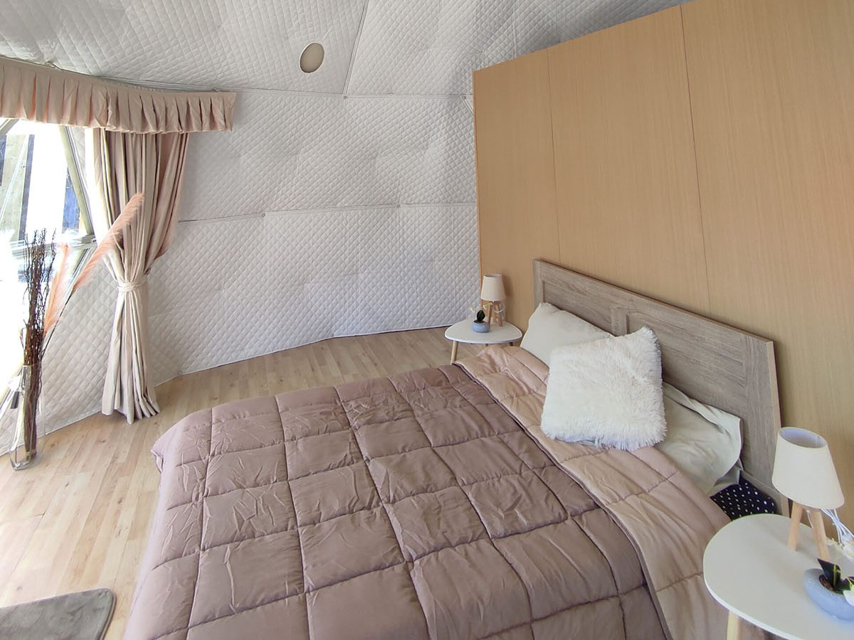 Glamping-Domes are an innovative product where you can promptly and economically start your business or expand your existing one. It ensures your diversity in hospitality services you provide since they offer comfort and luxurious accomodation with a minimum energy footprint and at the same time you upgrade your business by following the new standards of tourism development. Glamping-Domes starts from 20 sqm and can be configured as required. In addition to the included equipment, you have the option of many other accessories such as an internal bathroom, a wardrobe, a stove with a chimney, a partition wall, a kitchen, etc. The internal insulation makes Domes extremely durable, officialy certified and occupants are completely safe and comfortable. Its aesthetic design suits any natural environment without burdening it.
